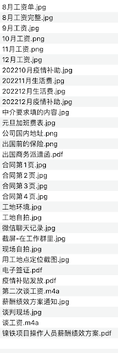 一位常常去海外打工的工友的证据包。他说:“有的企业做不到人走账清。关于公司的聊天记录,我从来没删除过。重要的信息都下载下来保存,害怕万一出现情况。”